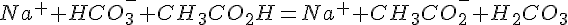 On fait donc réagir du vinaigre blanc, ou acide acétique/éthanoïque, avec du bicarbonate du soude, ou hydrogénocarbonate du sodium. Je comprends que la réaction fait intervenir un transfert de proton (puisque c'est la définition des réactions acide/base) et je devine à peu près le chemin qui mène à la formation de l'acétate de sodium, produit qui nous intéresse. Cependant, en terme de mécanisme je n'ai aucune idée de comment de l'eau et du dioxyde de carbone viennent à être formés au cours de la réaction.