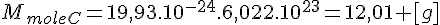 Donc la masse d'une mole de C :et donc la masse molaire du carbone