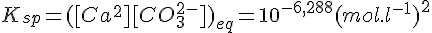 On a également accès au tables de constantes nous donnant les Ka1 et Ka2 de l'acide carbonique mais alors je ne vois pas comment exprimer la concentration en calcium celle-ci n'apparaissant nulle part dans ces constantes d'équilibre...