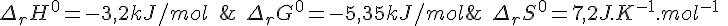 Delta S de réaction = -335 +70 -158 - 225,7= 21,3 J/mol K (298K)