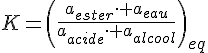 Je m'explique, je trouve dans de nombreux articles que le K d'une constante d'estérification vaut 4 et que le taux de conversion d'un alcool primaire en ester est de 67 %