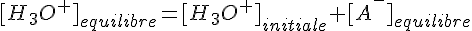 puisqu'on considère les quantités initiales d'ions oxonium et hydroxyde dues à l'autoprotolyse de l'eau comme négligeable. D'où la formule :