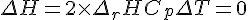 où ΔH est la variation d'enthalpie, Cp est la capacité calorifique molaire des produits (qui peut être considérée comme constante), n est le nombre de moles de produits, et ΔT est la variation de température.
