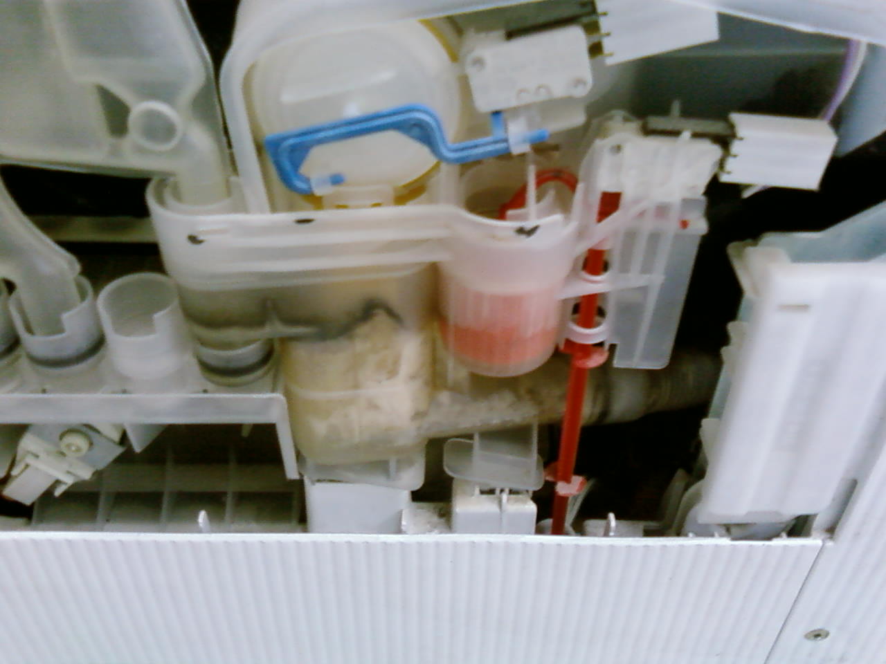 Problème semble-t-il fréquent sur ce lave-vaisselle: la vidange ne s'effectue pas à la fin de tous les cycles et l'eau reste au fond de la cuve. On entend la pompe de vidange tourner. Après avoir démonté le côté gauche, j'ai observé le cycle court. Tout semble correct jusqu'à la vidange.