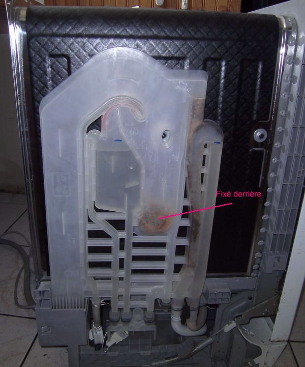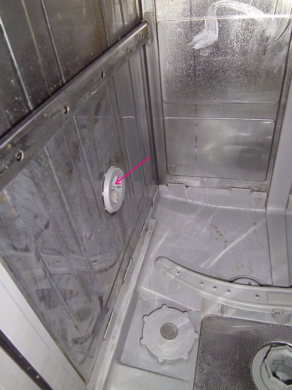 Mais la pulpe, (ou la crasse propre), qu'est-ce qu'elle fait une fois le lave vaisselle réencastré ? Elle se redépose (comme dans le sketche sur les lessives). Je souhaite donc nettoyer le répartiteur qui se trouve sur le flanc gauche du lave vaisselle.
