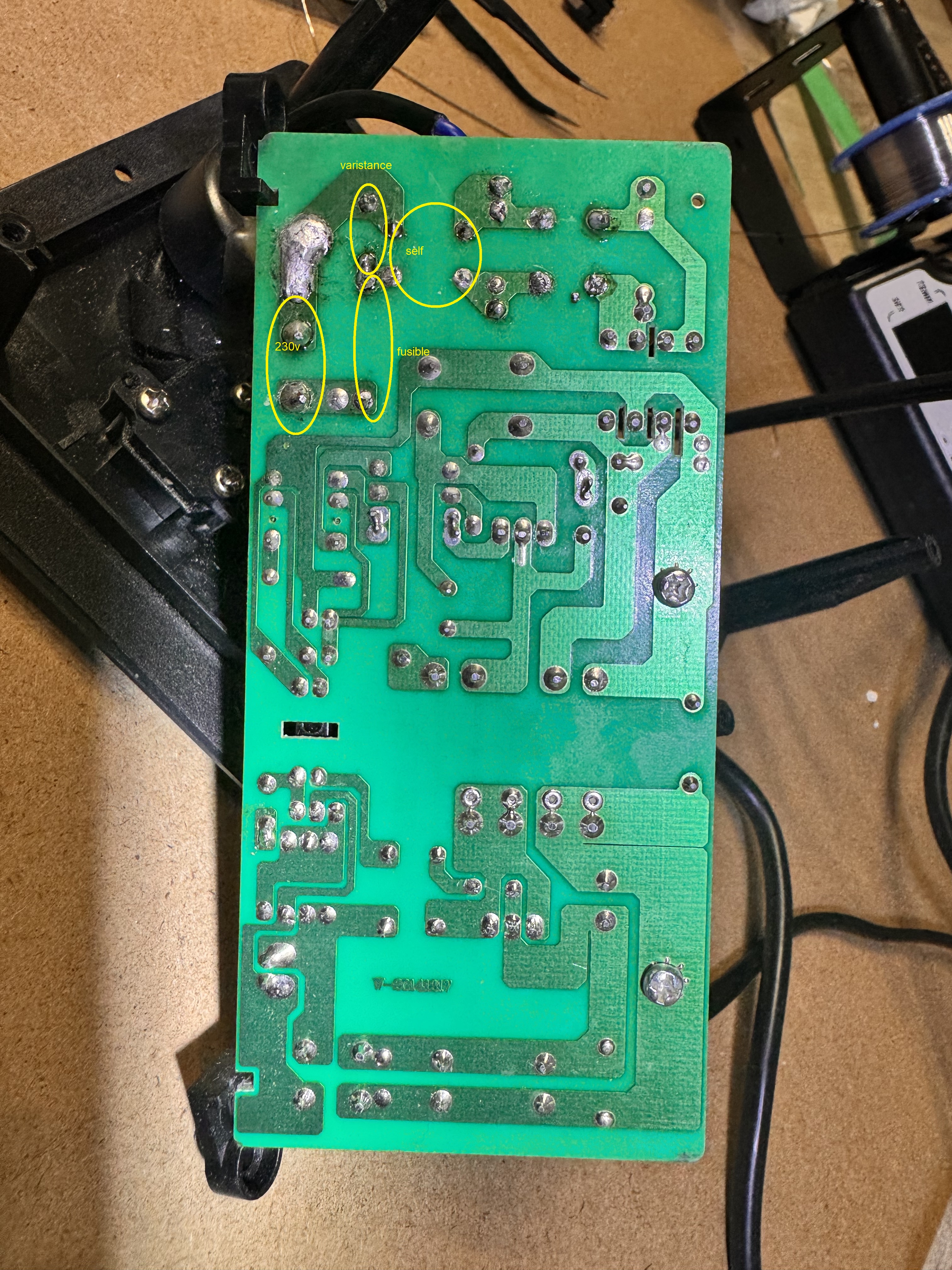 Je joins des photos de la carte d'alimentation.