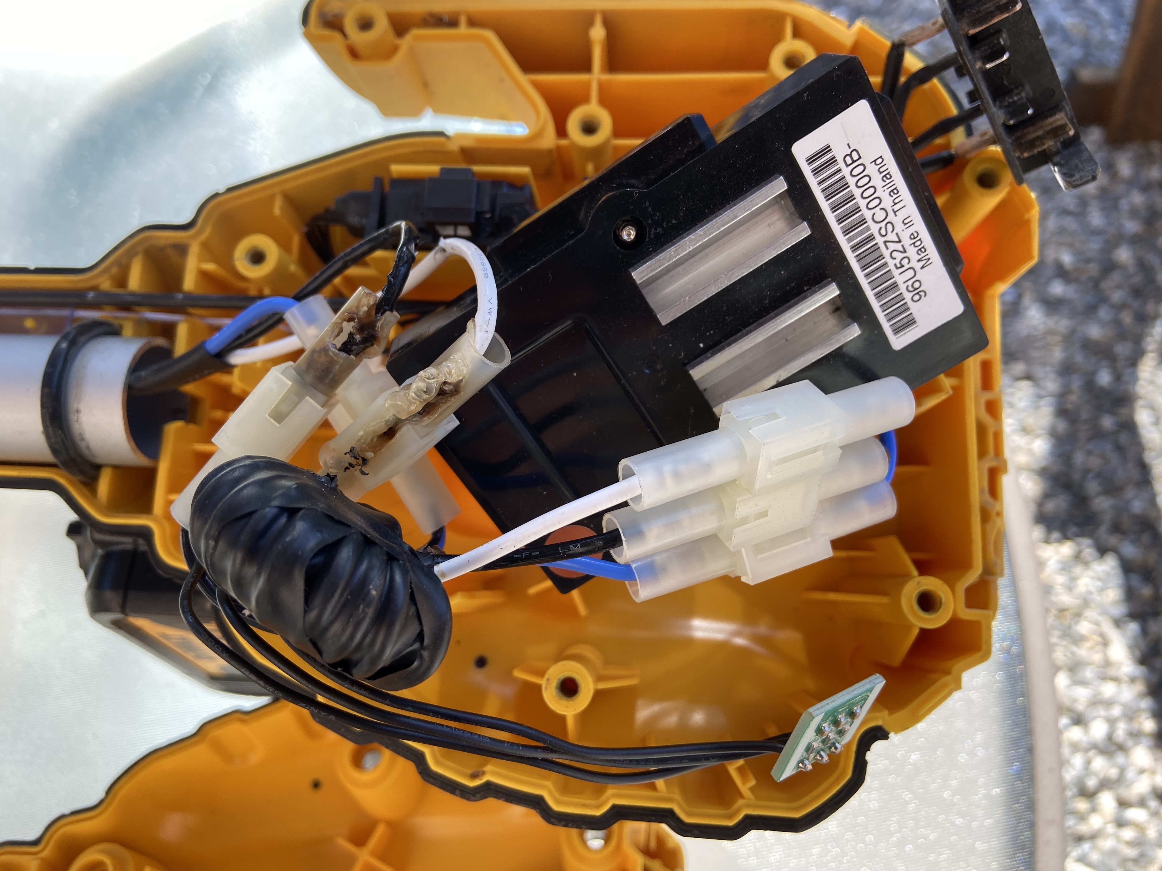En démontant, j'ai remarqué pas mal de fibres végétales coincées au niveau de l'axe. Je pense que ça a forcé sur le moteur du coup. J'ai enlevé tout ça, bien sûr, mais ça ne change rien.