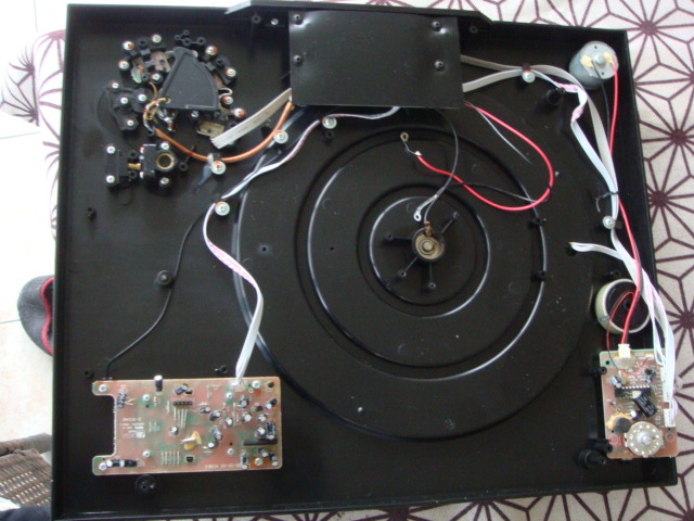 Bonjour à tous, j'ai besoin de votre aide pour faire refonctionner la platine qui tourne trop vite en 33 et 45 trs, c'est une platine manuelle avec trois circuits imprimés pour le préampli, l'écran numérique et la gestion de la rotation en 33 ou 45trs. le réglage du pitch ne change rien, c'est un système mécanique "bizarre" qui déplace une tige fine sur l'axe de rotation du bras?