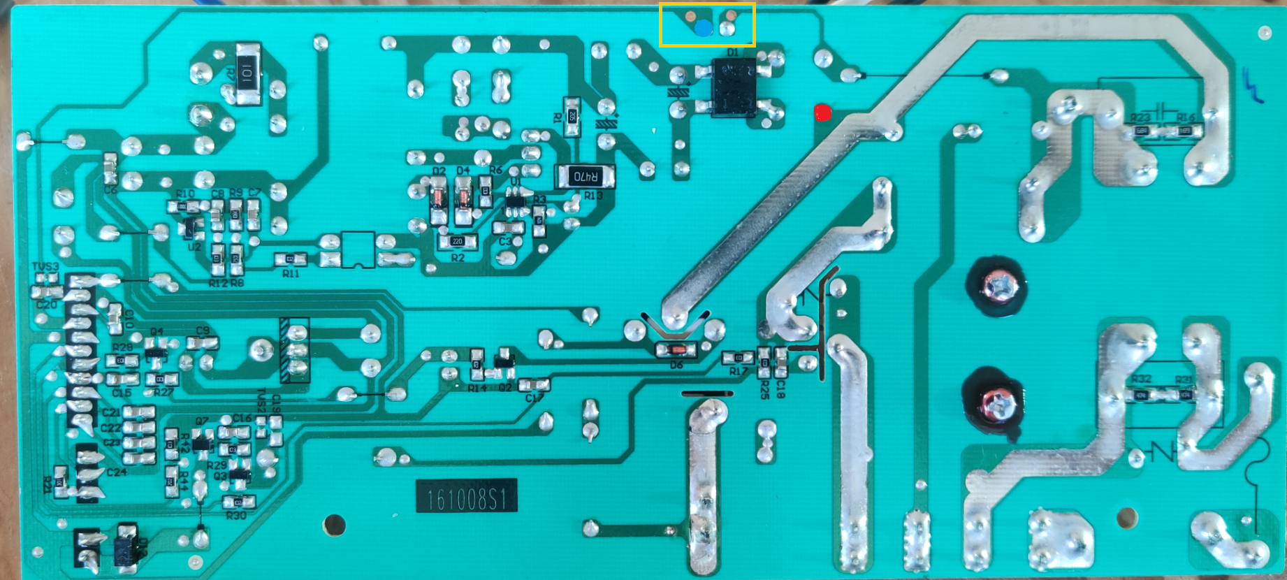 de l'autre coté des 2 points de soudures évoqué il y à ces 2 cables donc peu probable que ça vienne de ces 2 soudures :