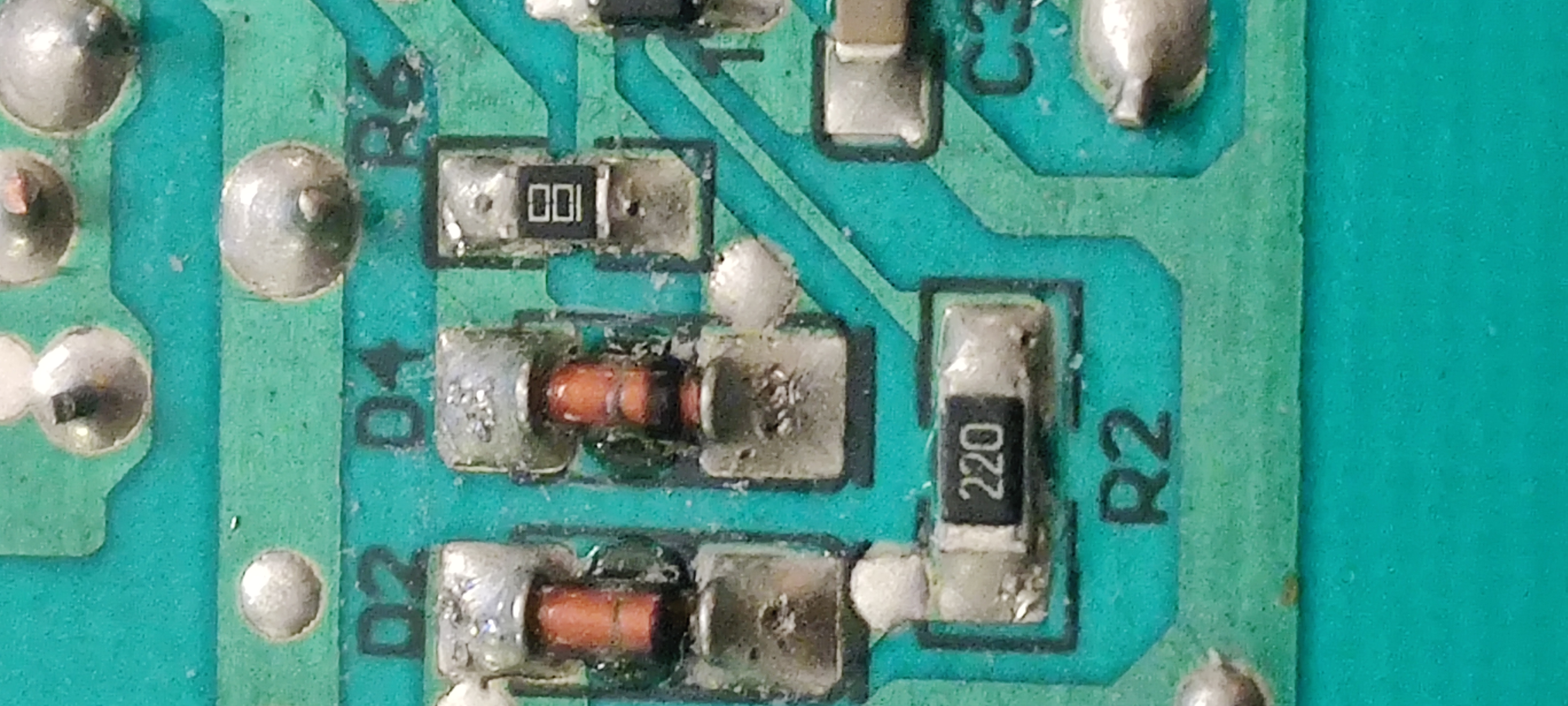 la D4 a une résistance de 10 Ohms en parallèle si j'ai bien vu (marquée 100)