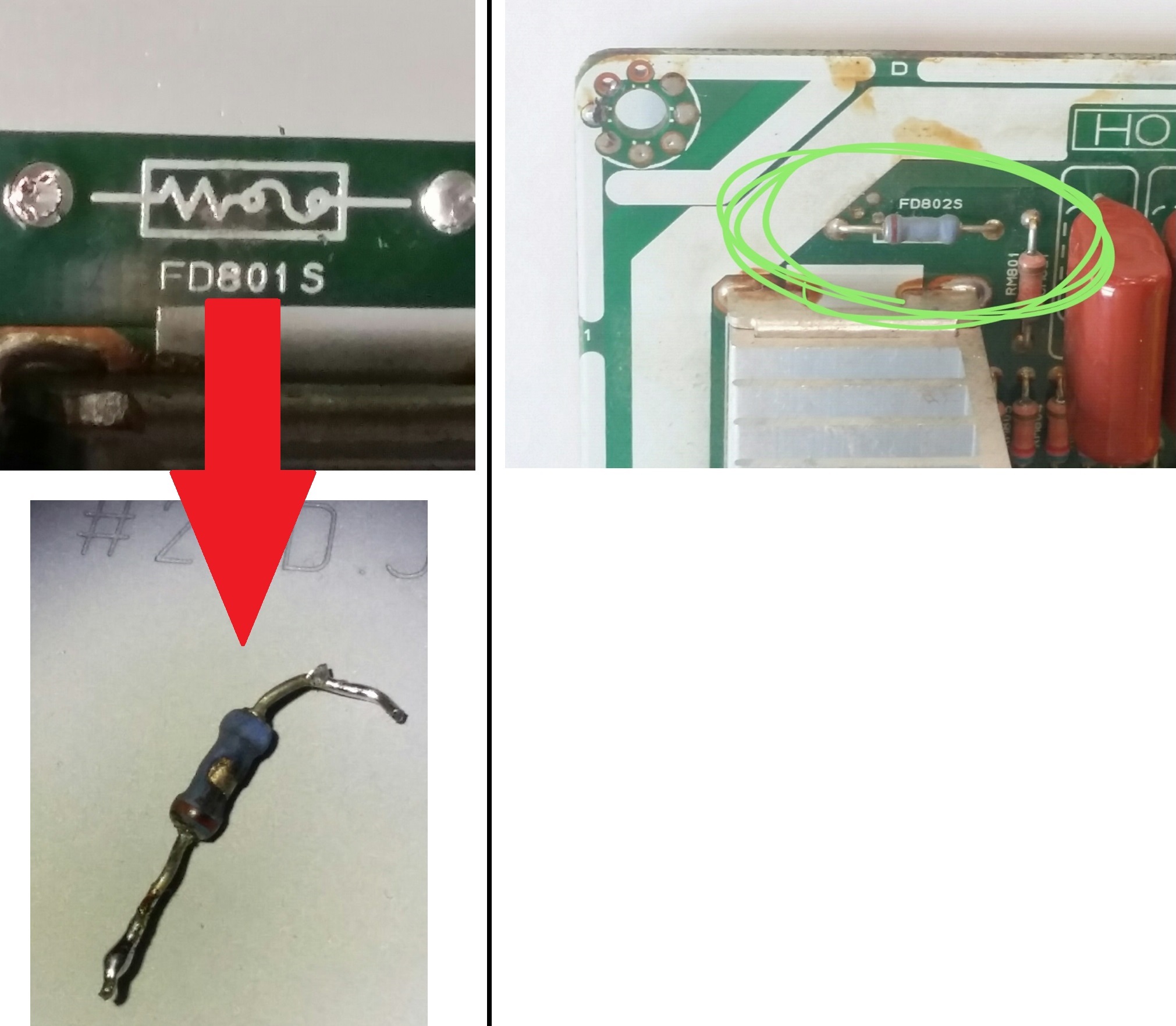 Le plus étrange c'est les valeurs des deux résistances fusibles, FD801S = 10M et FD802S aussi 10M.