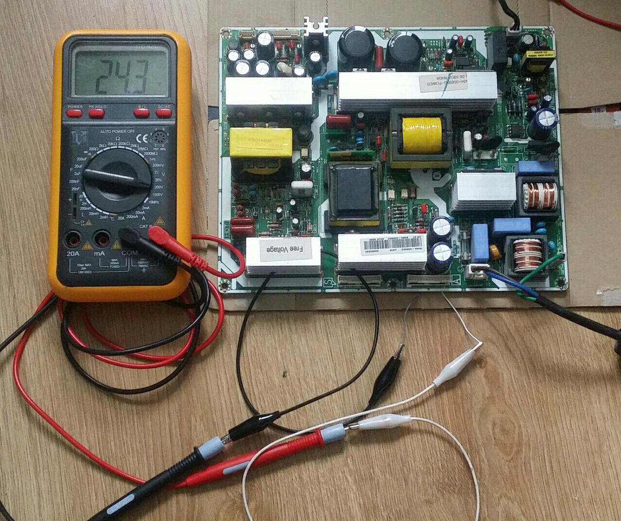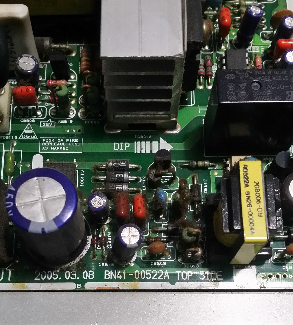Je tente de réparer pour un ami une télévision Samsung LE26R51B. Il m'a dit avoir entendu un "clac" après une rafale de coupures de tension secteur, peut-être 3 ou 4 en l'espace de quelques secondes.