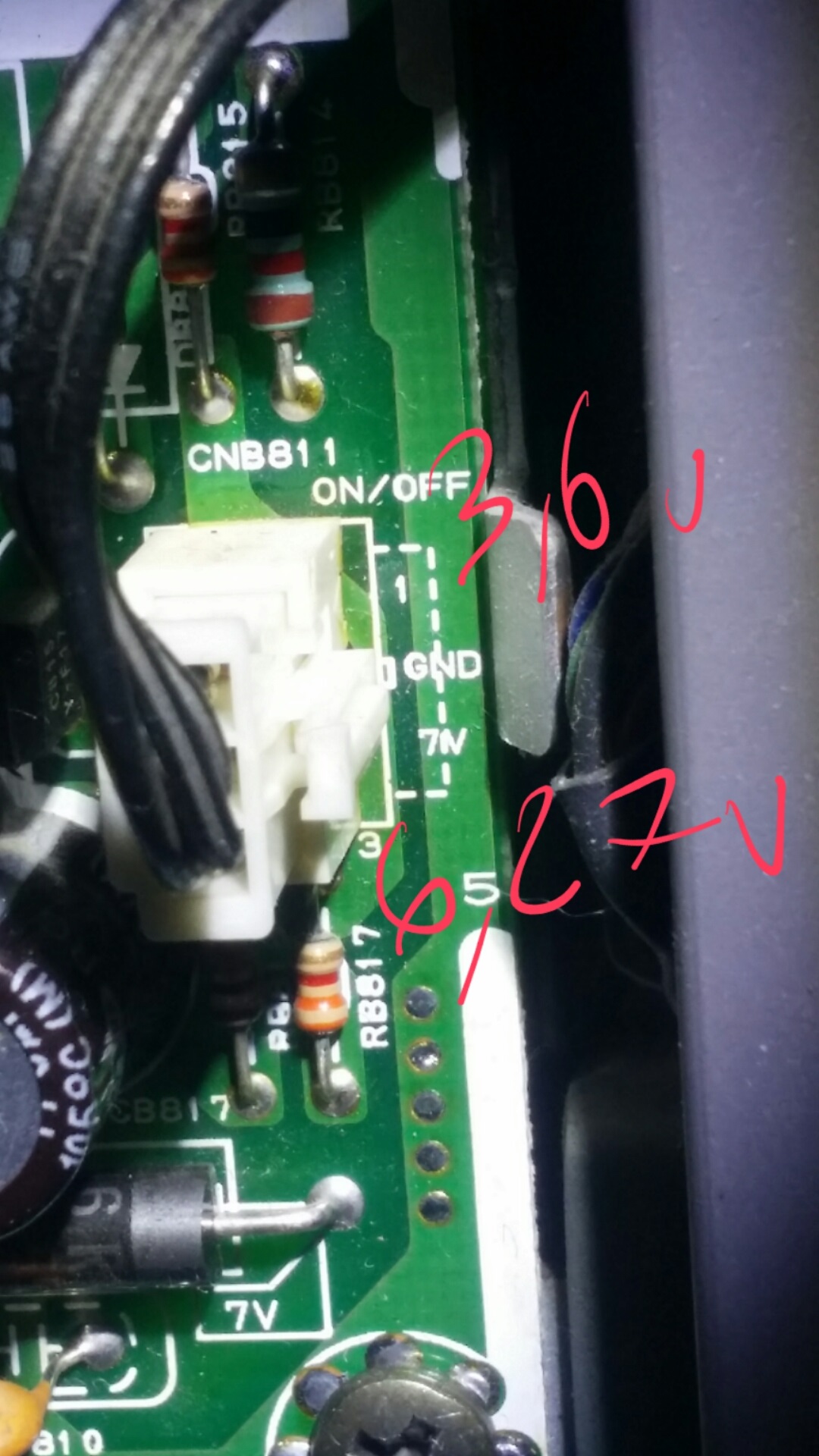 Précision importante, il se trouve que cette résistance fusible, FD801S, à sa sœur jumelle sur la carte, même fond, même unique anneau avec la même couleur, FD802S.