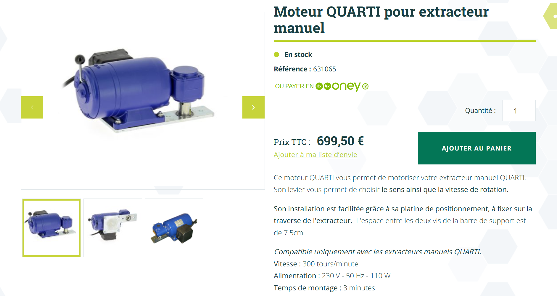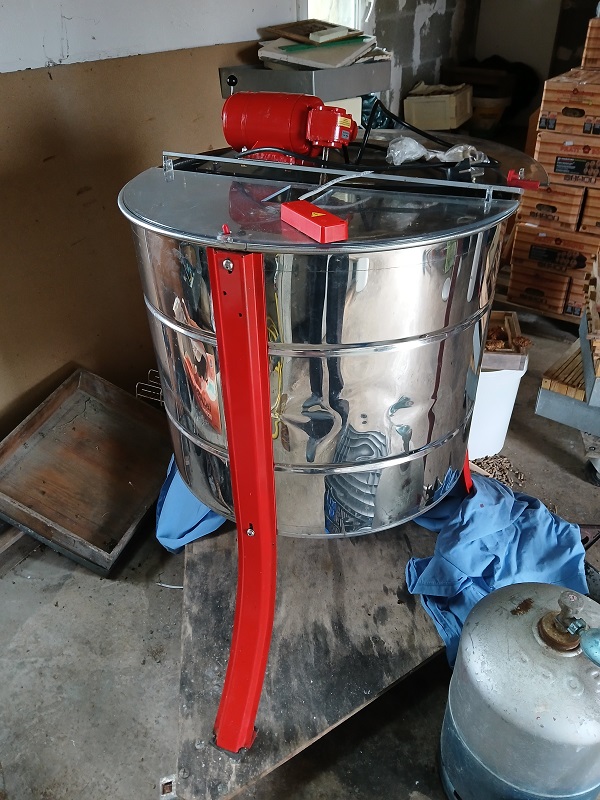 Une fois l'extracteur chargé de cadres pleins de miel, il faut le lancer à la main, et ensuite impossible de lui faire prendre des tours correctement, un peu comme un embrayage qui patine sur une voiture.