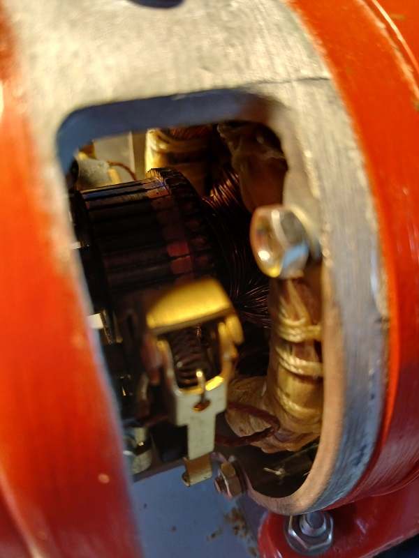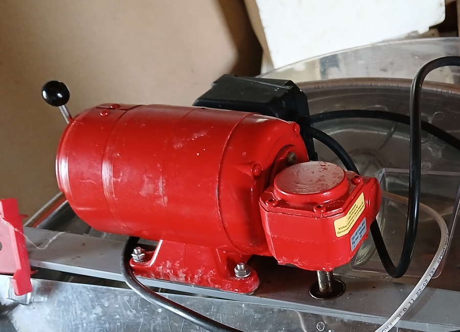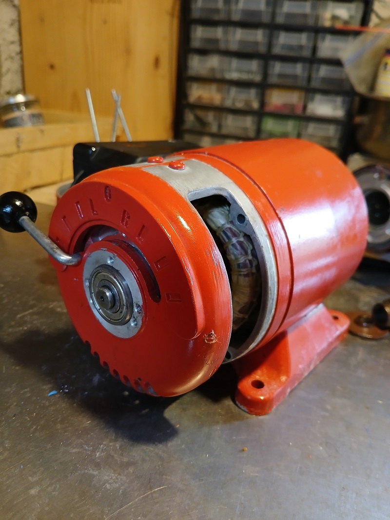 Voilà donc ce qui m'amène : sur l'extracteur de miel du voisin dont je me sers également, le moteur n'entraîne plus la charge. Plus en détail : à vide il démarre et tourne à peu près bien malgré un bruit de sifflement sourd.