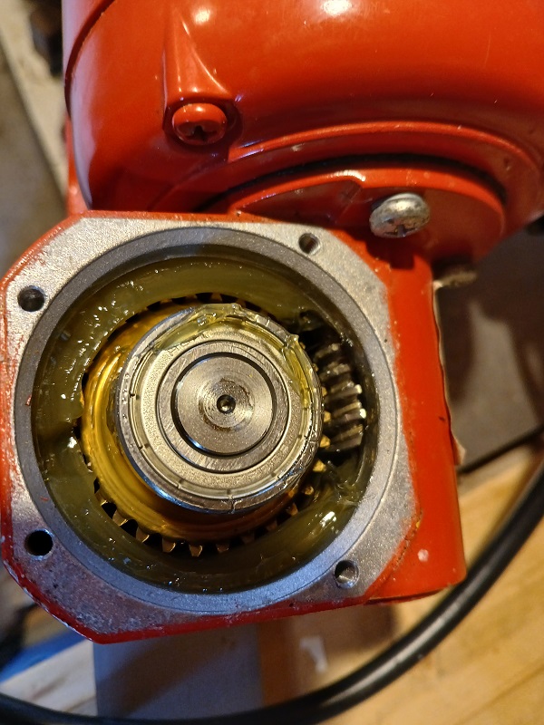 Au début j'ai pensé à un problème mécanique mais l'accouplement ne présente pas d'usure, et le réducteur semble bien (pas de dents usées ou cassées, graisse très propre).