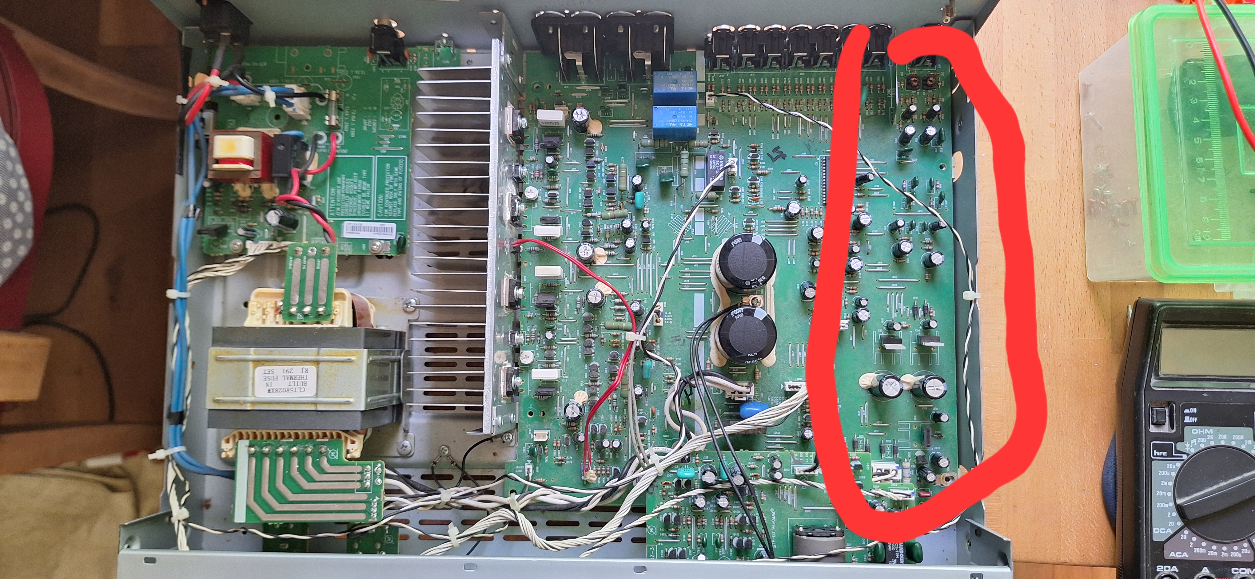 Je penche pour un condensateur défectueux sur le chemin de l'entrée droite du phono.