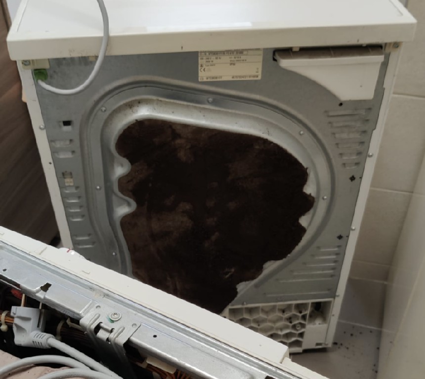 j'ai un sèche linge Bosch WTE86301FF05 qui a presque 20 ans. La mousse à l'arrière de la machine se délite. Je m'en suis rendue compte quand notre lave linge a rendu l'âme ; le sèche linge est posé par dessus, les deux machines sont collées à la cloison de la salle de bains. C'est une vraie plaie ça en met partout et c'est collant.