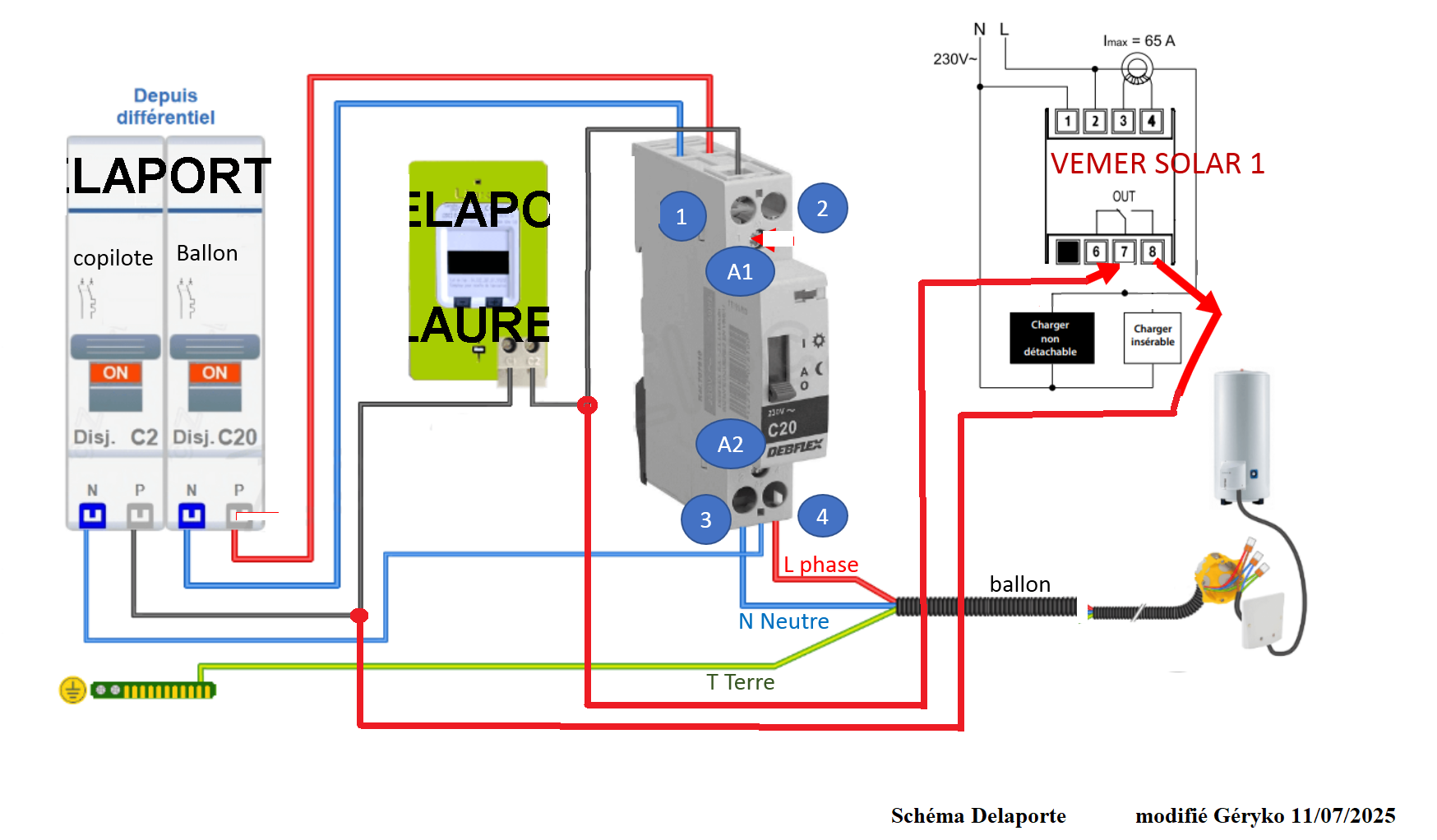 mon schéma est il correct si je le branche en complément sur un ballon d'eau chaude déjà relié a un contacteur jour nuit