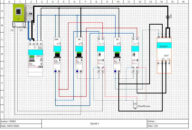 a l'aide d'un disjoncteur 2 ampères en amont pour protéger le VEMER SOLAR 1