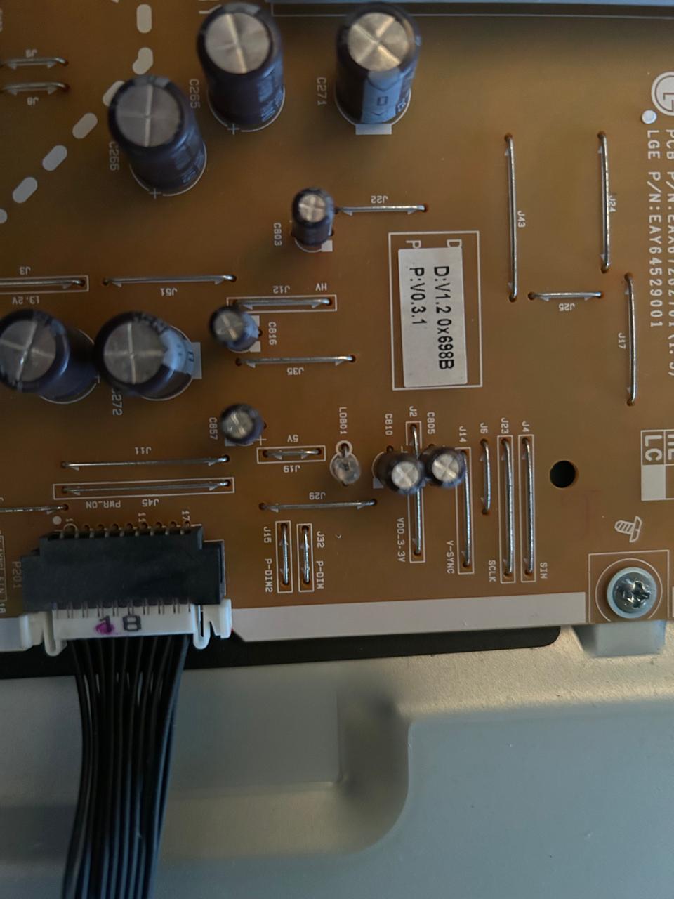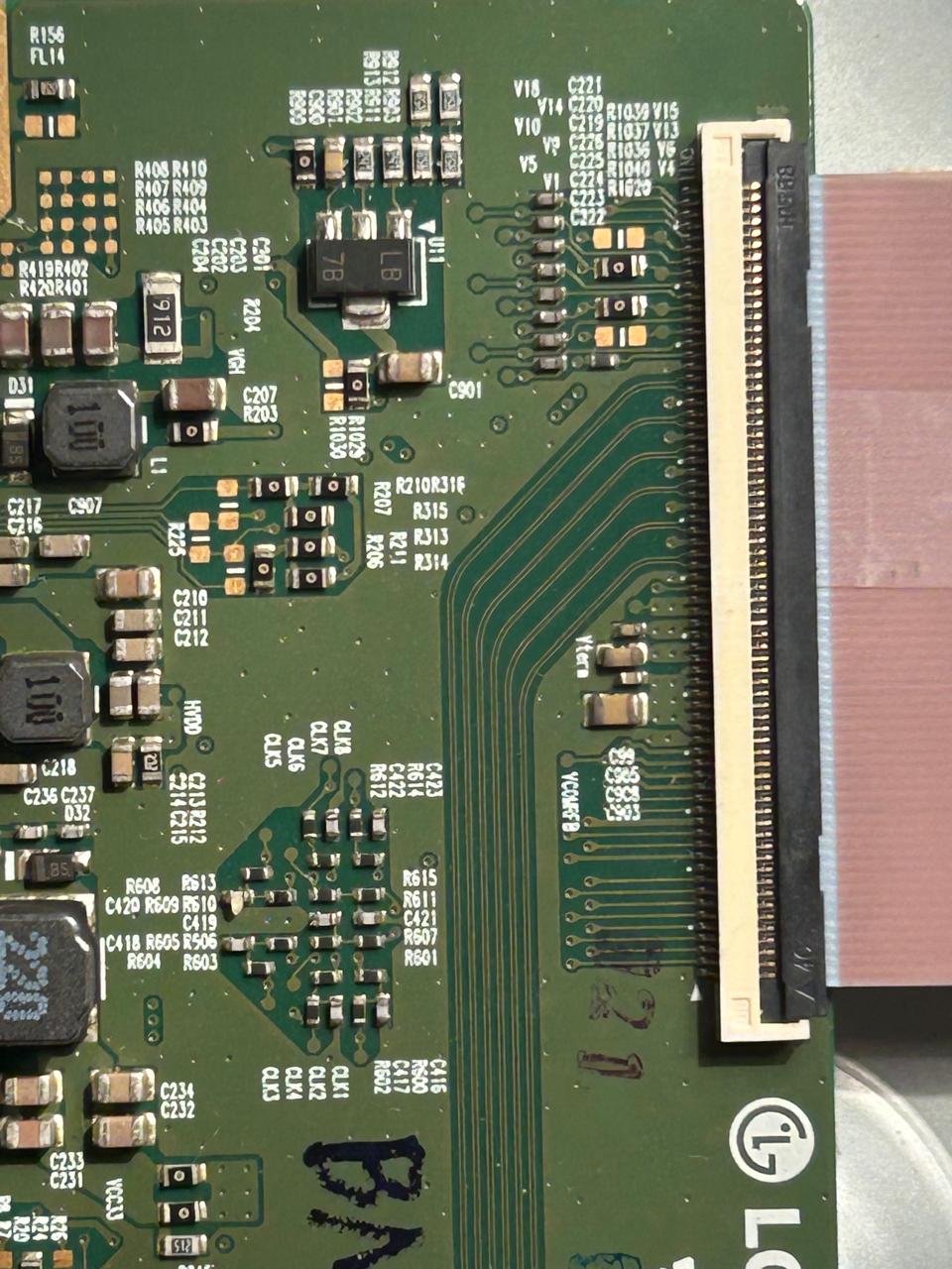 Une fois la tv ouverte, je note que sur la carte d’alimentation, la diode notée « LDB01 » clignote et émet régulièrement 8 flashs orange.