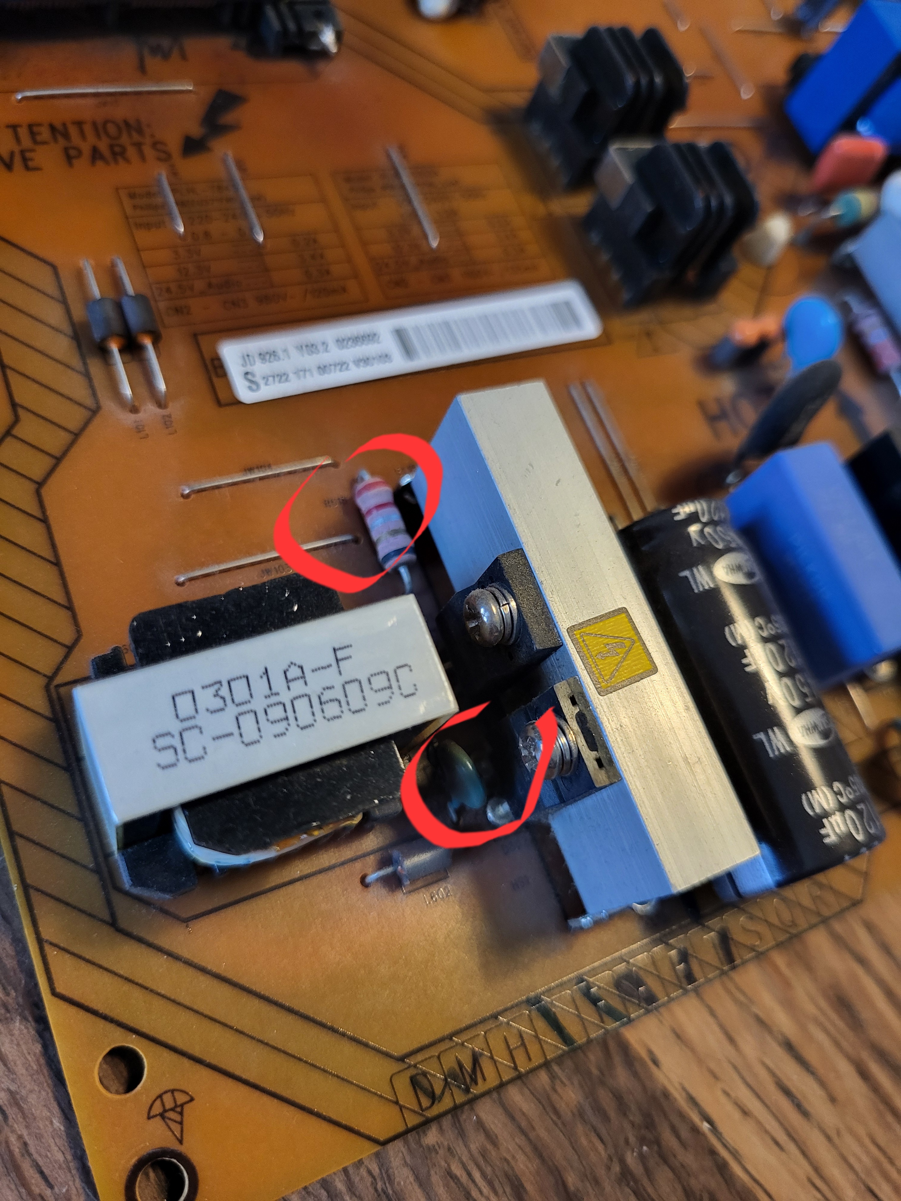 J'ai une Tv 42pfl5604h/12 philips qui s'est arrêtée subitement. J'aimerais essayer de la réparer mais je suis novice et peu équipée ( fer à souder, pompe à dessouder, multimètre basique)..après démontage, je trouve le fusible de la carte d'alimentation grillé. En regardant de plus près je trouve une résistance fendue et un thermistor noirci/ fondu.