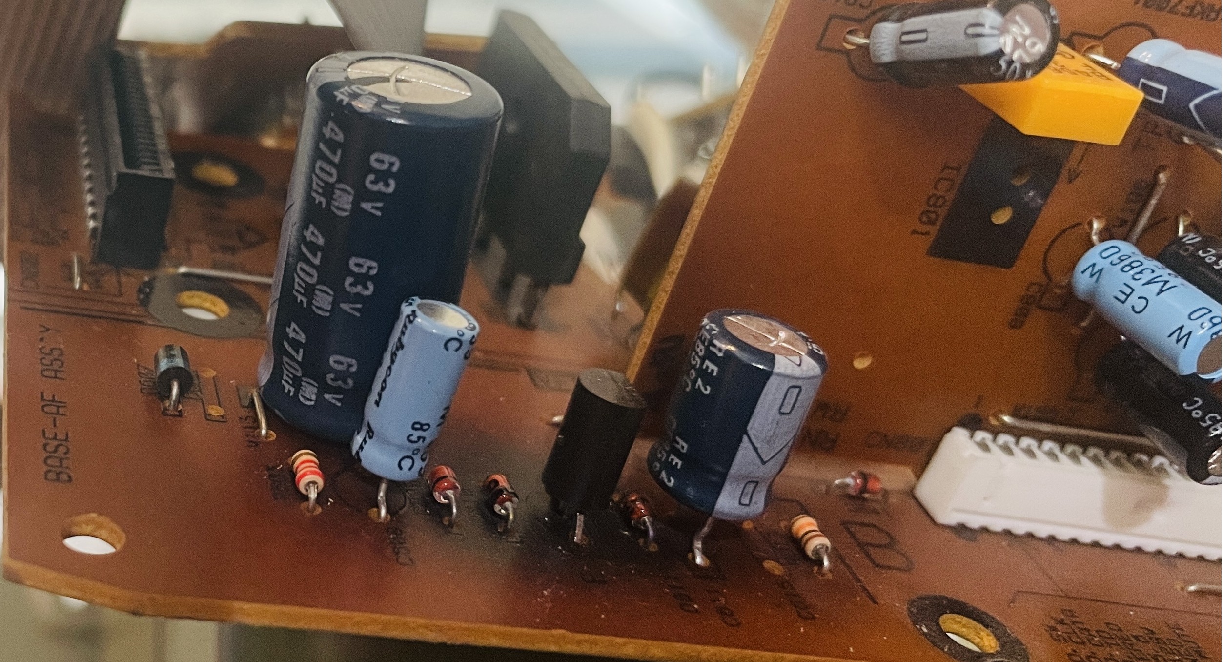 Avant que je commence à démonter, je suis preneur d'éventuelles pistes pour m'orienter. J'ai à ma dispo fer à souder et multimètre. J'aurais tendance à commencer par démonter les 2 condensateurs pour les contrôler...