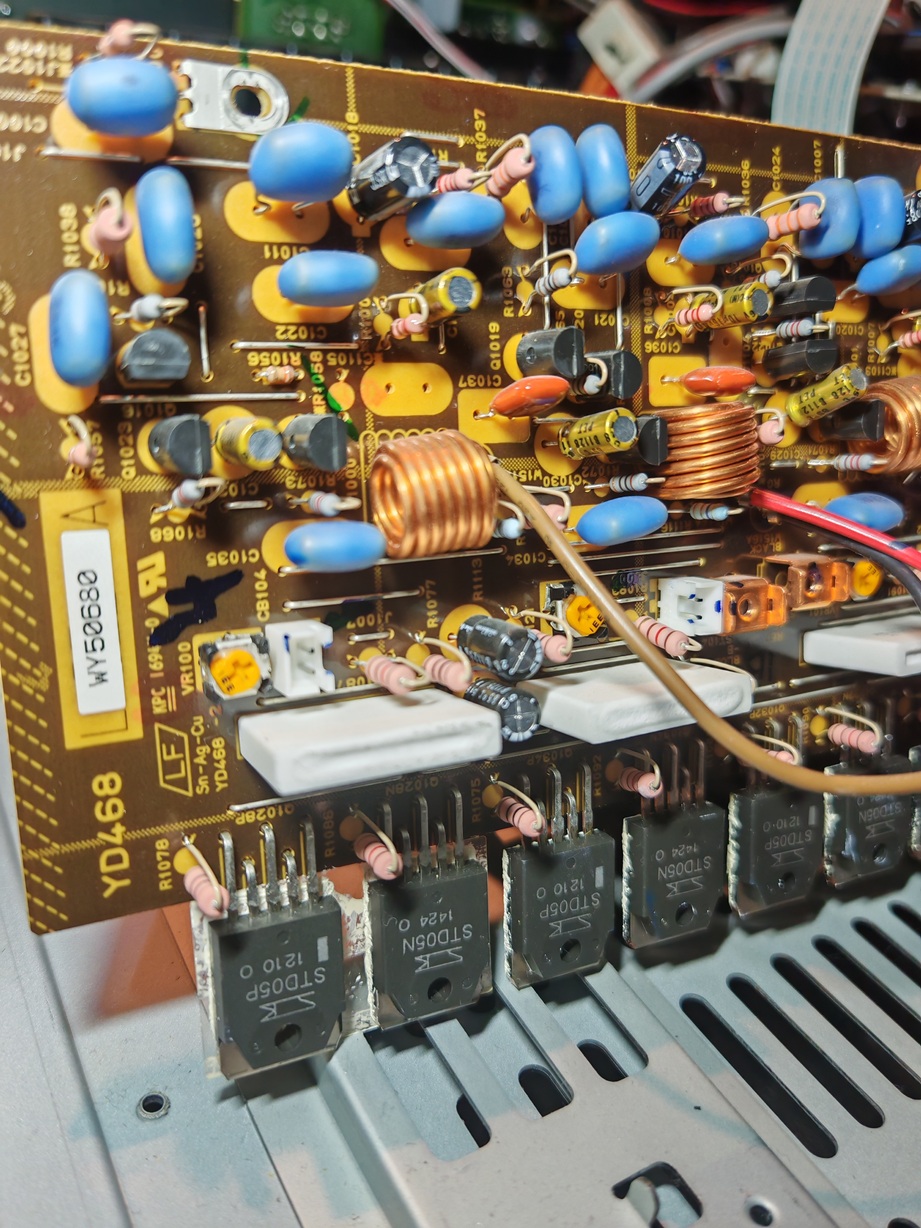 Effectivement rien trouvé non plus. Ils sont par paire apparemment (un N et un P vendu ensemble) la référence yamaha : WT732100Pas trouvé de datasheet sur les STD05N et STD05P. J'ai ouvert ceux des STD03N et P, ce sont des Darlington. Il devrait être possible de dégrossir la recherche de transistor défectueux en mesurant à l'ohmmètre entre collecteur et émetteur de chacun.