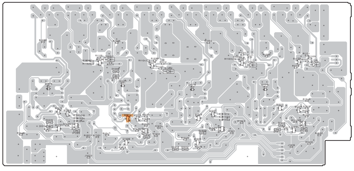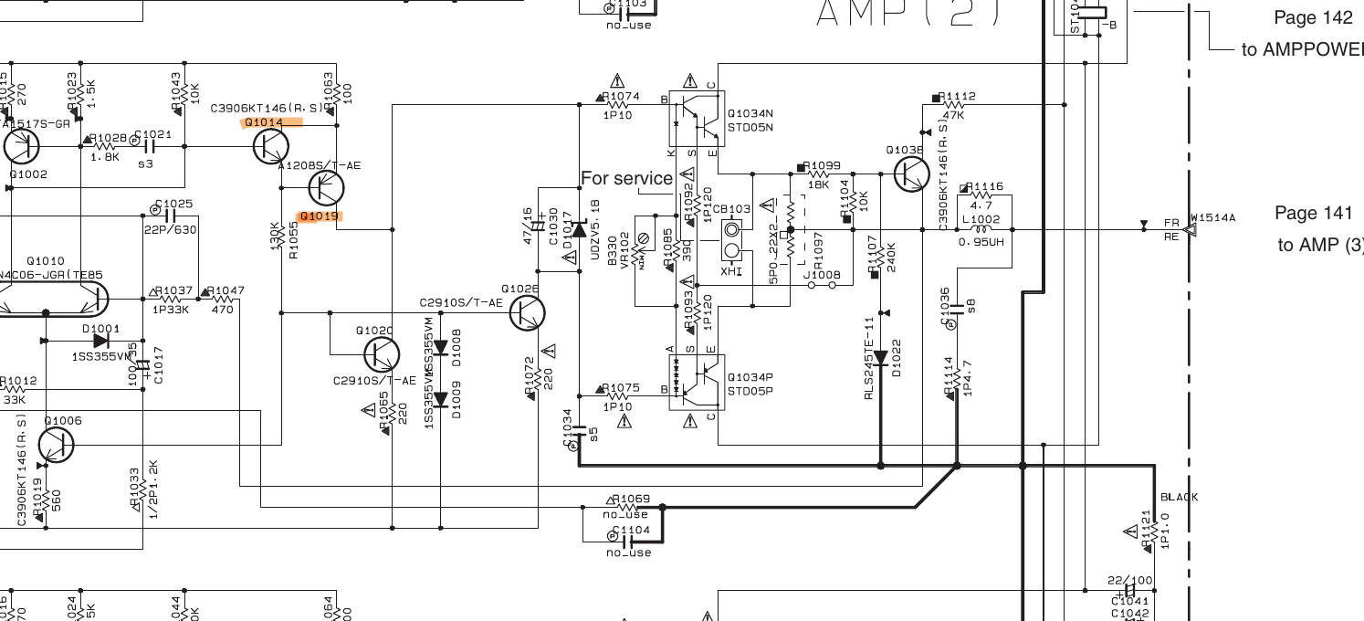 Je cromprends bien pour les Q1034, mais je ne vois pas ce que tu veux dire par remonter jusqu'à Q1014. Je n'arrive pas à le localiser ce Q1014. Il est aussi sur la carte d'AMP? même dans la nomenclature des composants il n'apparait pas...Yaka démonter les Q1034. Puis remonter au moins jusqu'à Q1014.