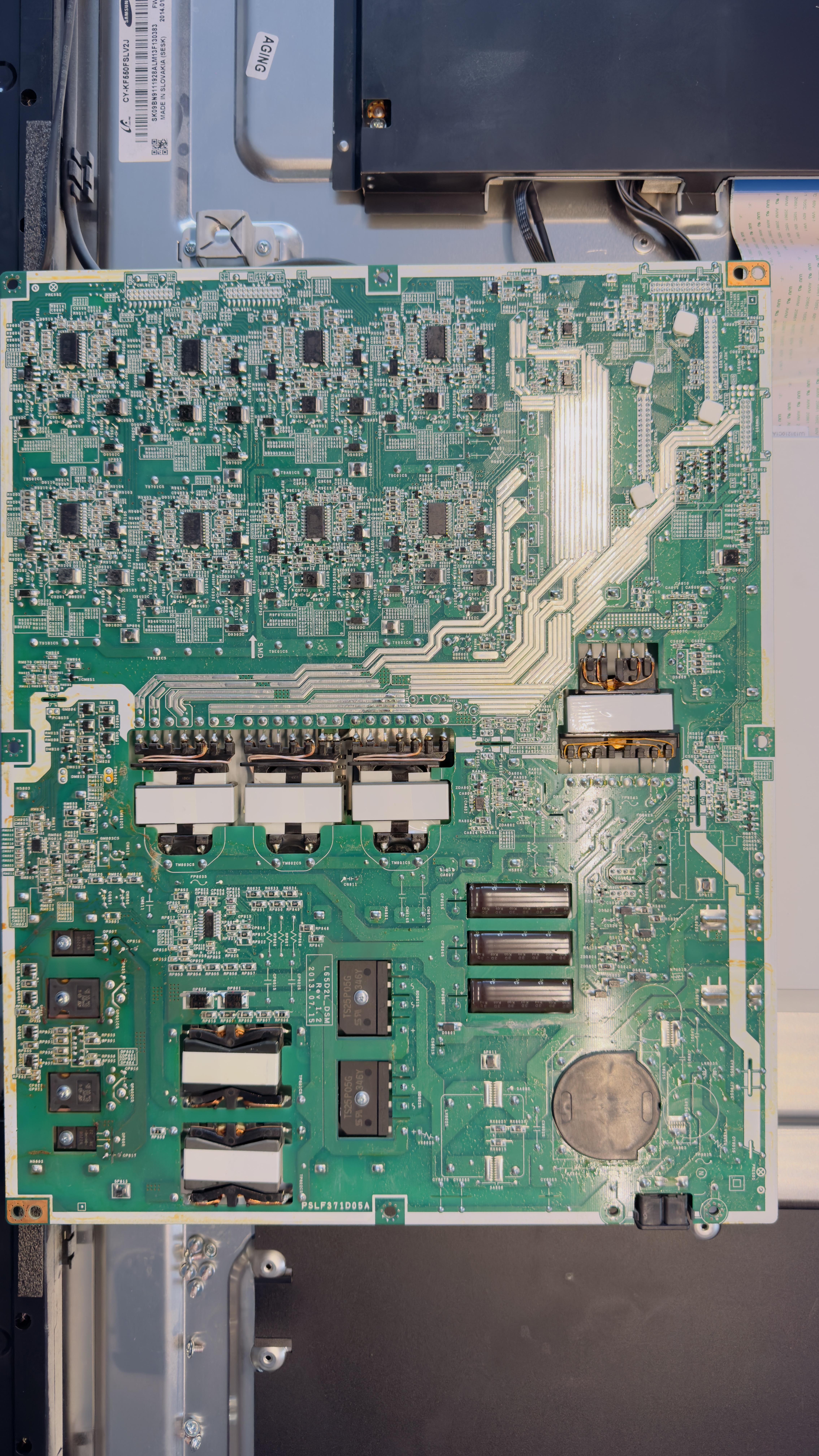 Je suis technicien en électronique mais pas familier avec les TV. Je dispose de matériel adéquat pour effectuer un dépannage plus approfondie mais je ne souhaite procéder méthodiquement et prudemment car, pour l'instant, lorsque la TV est stabilisée, elle fonctionne ensuite. Je ne souhaite pas aggraver le problème. A ce stade, je n'ai donc pas fait de mesure sous tension.