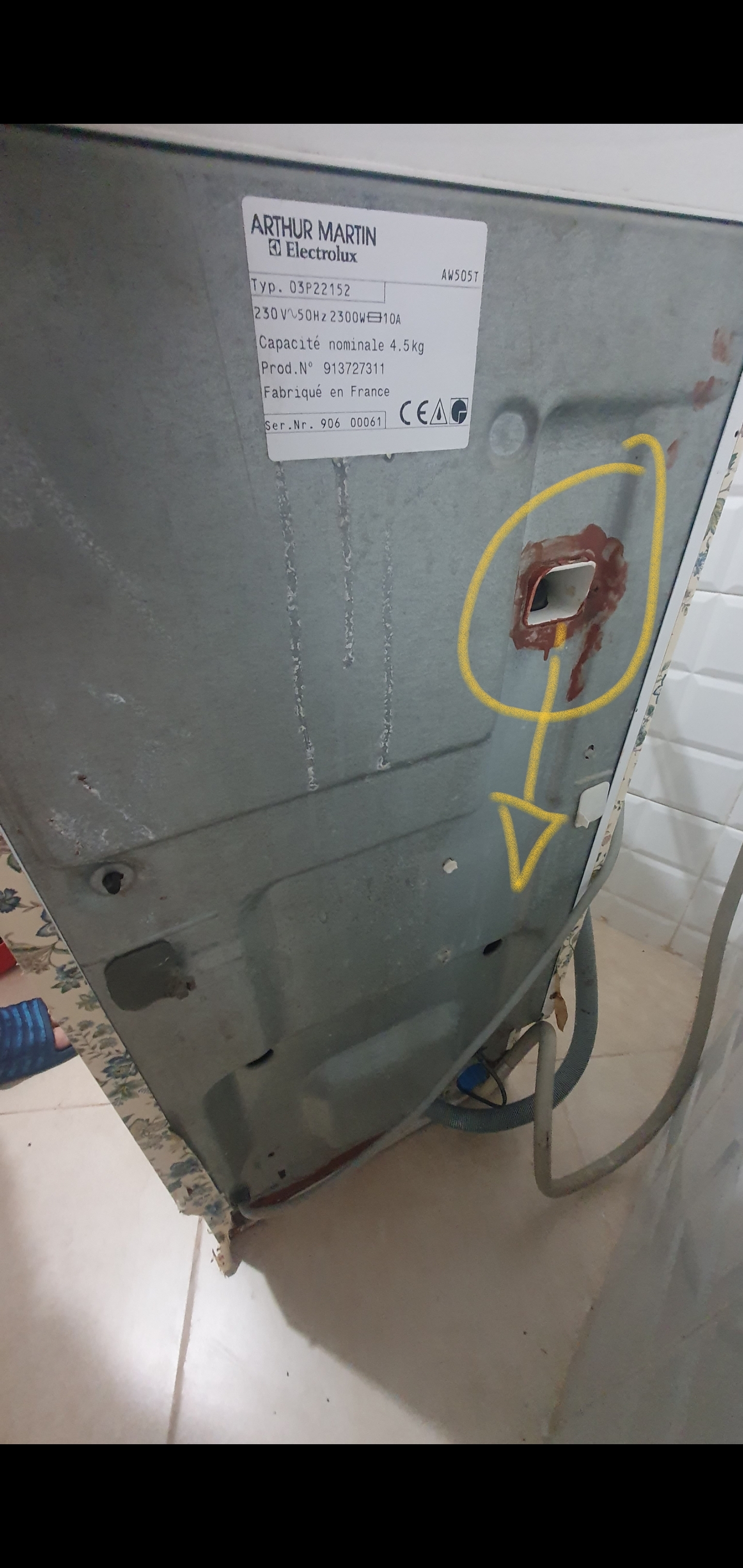 Machine à laver le linge Arthur Martin refoule l'eau