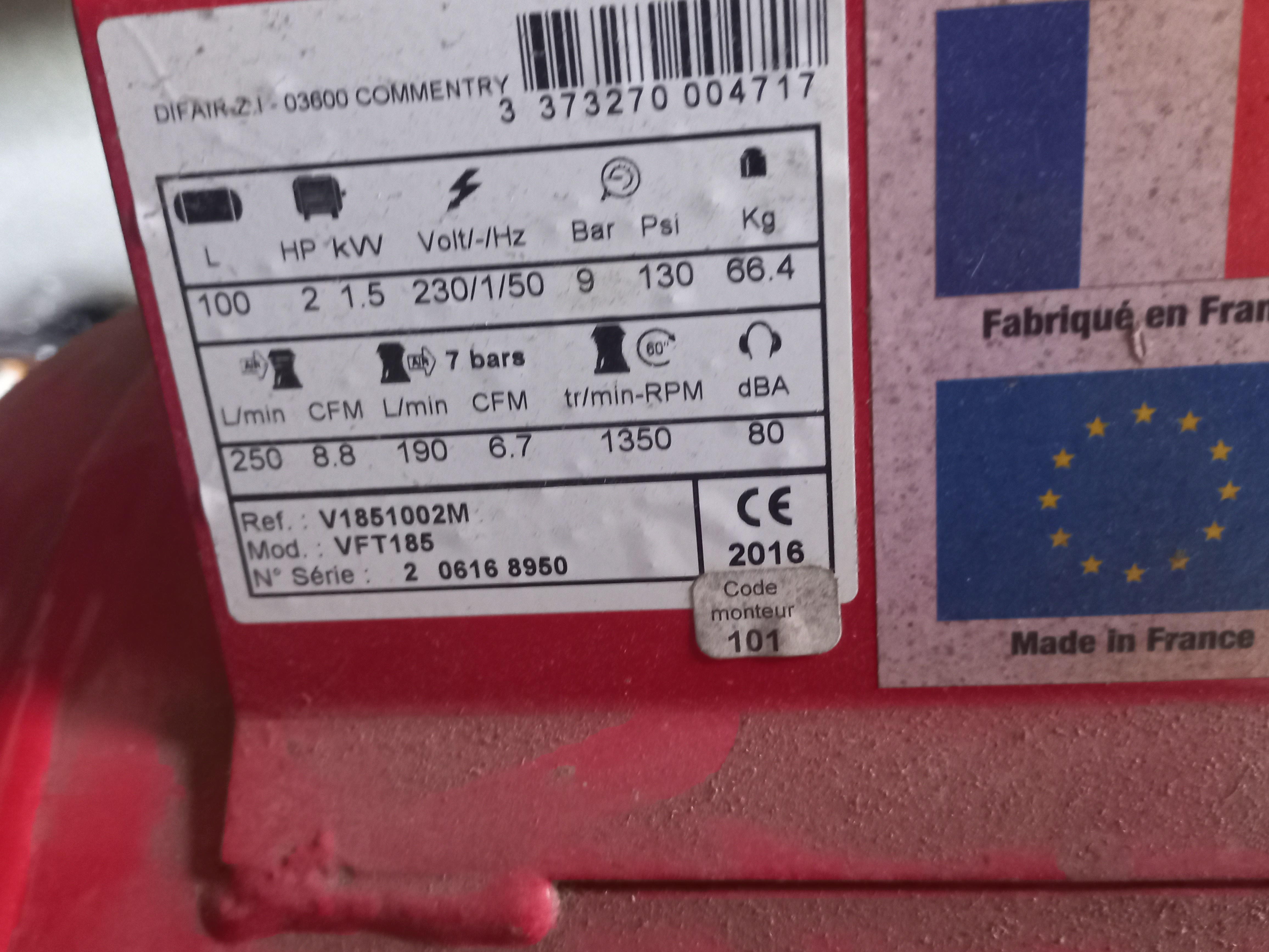 c'est un compresseur difair ref VTF 185 avec un moteur 1.5Kw de 2CV (Voir photo) type YL90S2
