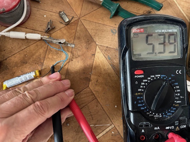 Quant à la batterie, je l'ai démontée du casque. C'est celle d'origine et je ne veux rien bidouiller, uniquement essayer de réparer.