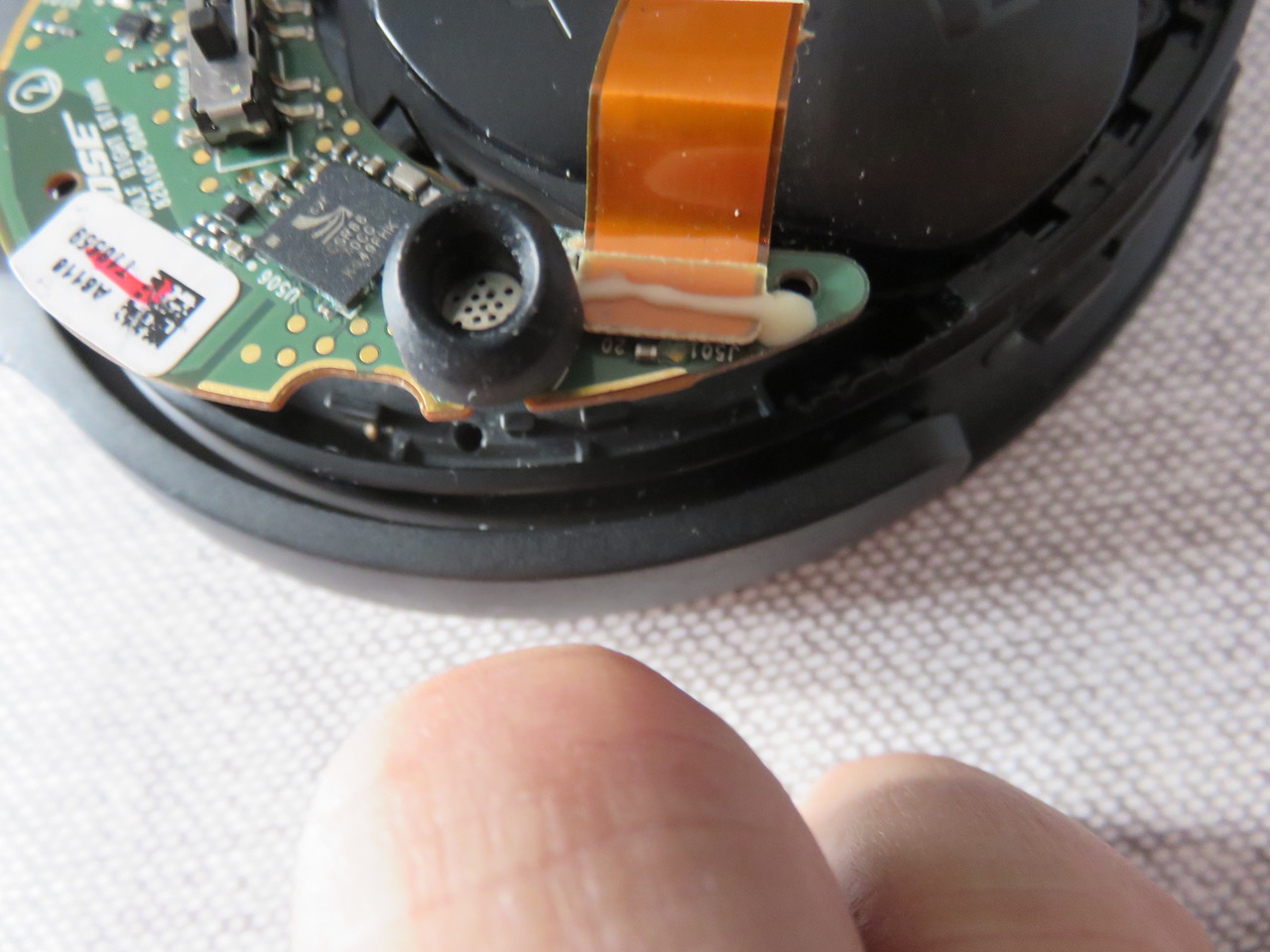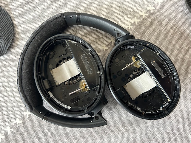 Je l'ai démonté et n'ai vu aucune trace. Tout est sec et le casque ne colle pas du tout. Photos jointes.