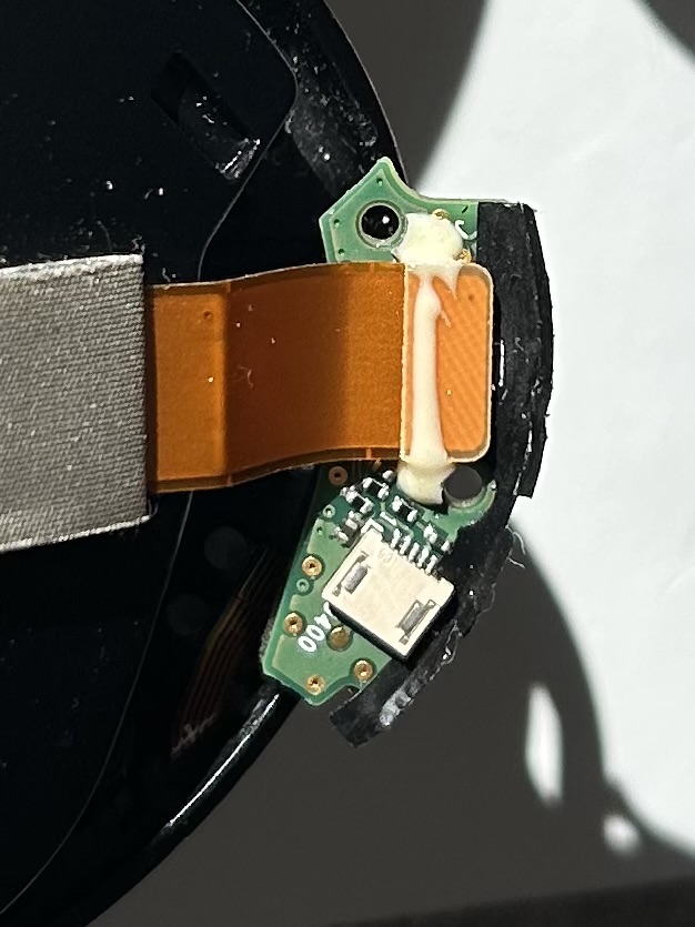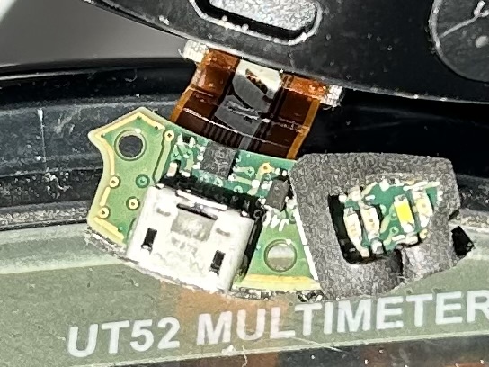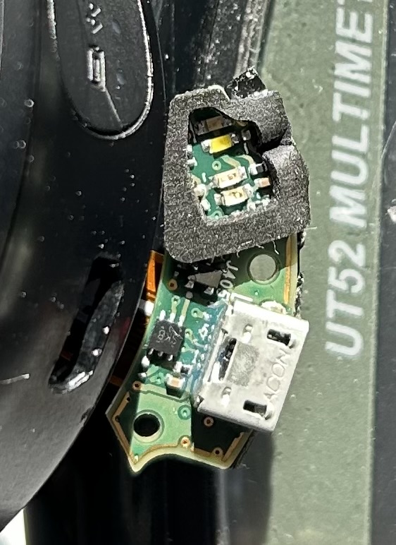 Celui-ci ne charge plus. Il aurait été dans un sac où une canette de soda aurait fuit.