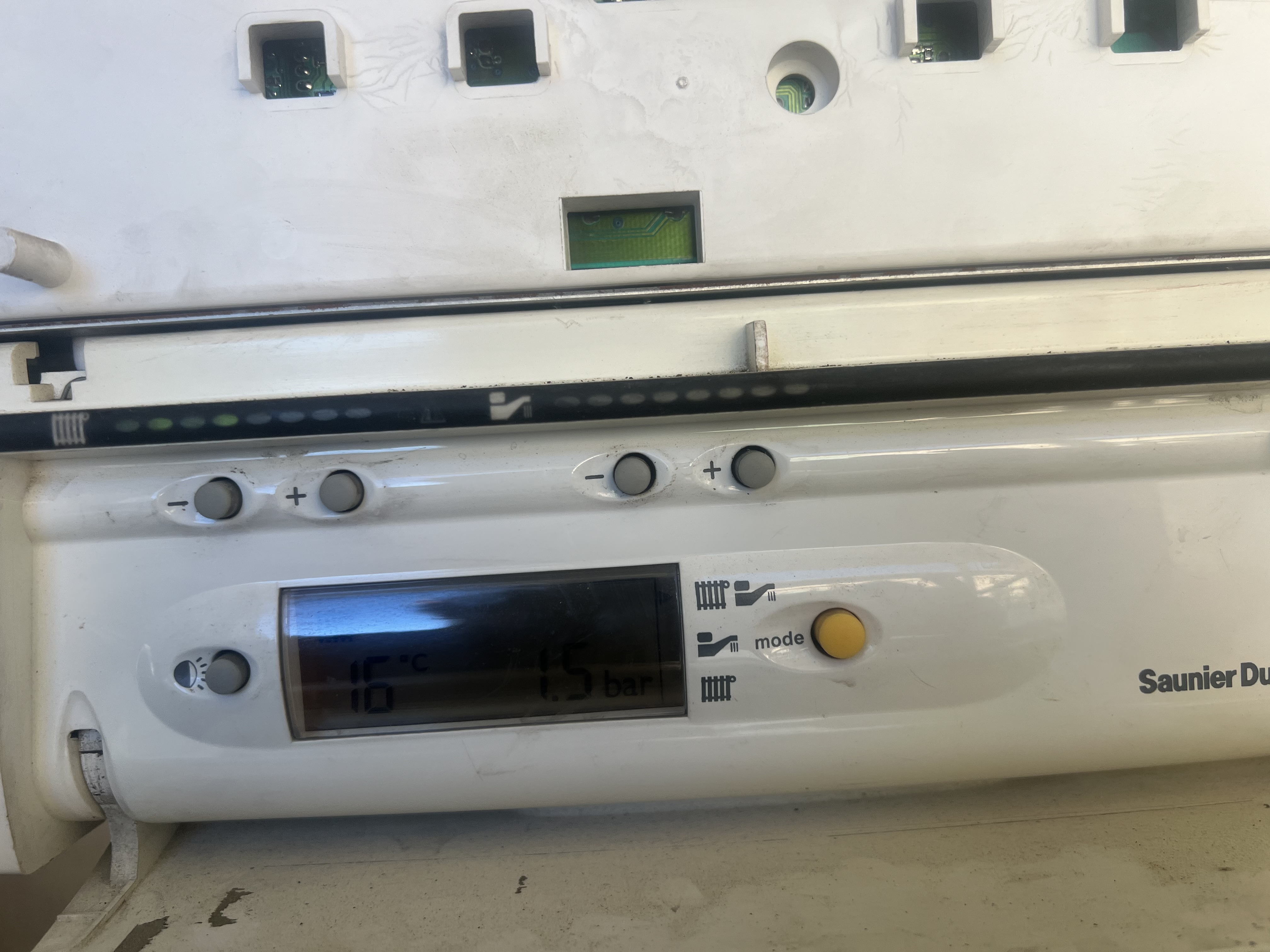 Après avoir vider, puis re rempli mon circuit de radiateur pour pouvoir effectuer quelques travaux, j’ai quelques problème pour la remise en route de ma chaudière . Après avoir vidé l’air du circuit de chauffage, de la pompe de circulation et du réservoir rouge, ma chaudière m’a affiché l’erreur 08FF me signifiant que le problème venait de ma sonde de température sur mon petit réservoir vertical de 3L pour mon circuit d’eau chaude.J’ai testé la sonde avec mon testeur électrique qui m’indiquait des valeurs cohérente avec le modèle de la chaudière. J’ai lu dans différents forums que la résistance pouvait avoir des micros coupures. un phénomène se produisait, quand j’ai enlevé la sonde qui était contre le réservoir froid de la chaudière, elle ne m’affichait plus le code erreur, mais ne voulait tout de même pas se lancer dès que la sonde refroidissait,Elle m’a reaffiché le code 08FF. Pensant que le défaut venait de la sonde, j’ai commandé une nouvelle sonde(S1027300-0572500). Une fois reçu, je l’ai branché directement à la place de l’ancienne sonde, et ma chaudière s’est mis fonctionnait donc je l’ai remplacé, on la collant en haut du petit ballon vertical de 3L . Une fois remis à ce bonne place, et la chaudière, complètement remontéele code d’erreur 8FF et revenu! sûrement le temps que la sonde refroidisse contre mon réservoir qui était froid.