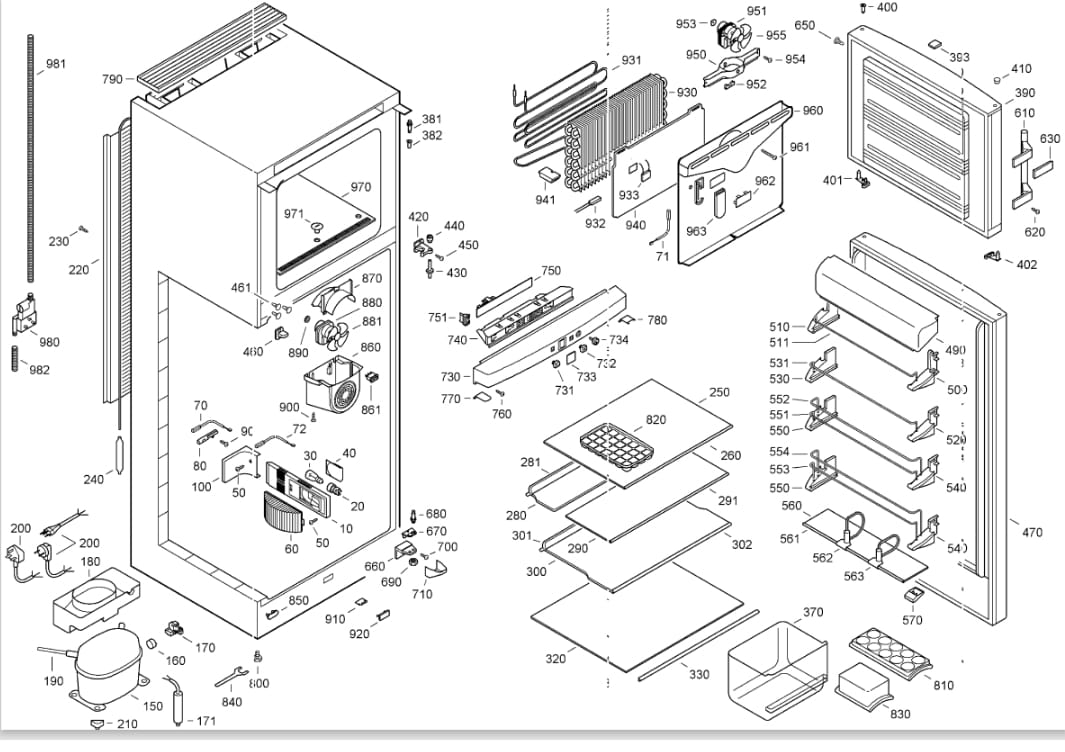 Quel serait la cause du problème ? Ci-joint une vue éclatée de mon frigo et les 2 sondes que j'ai trouvé à l'intérieur.
