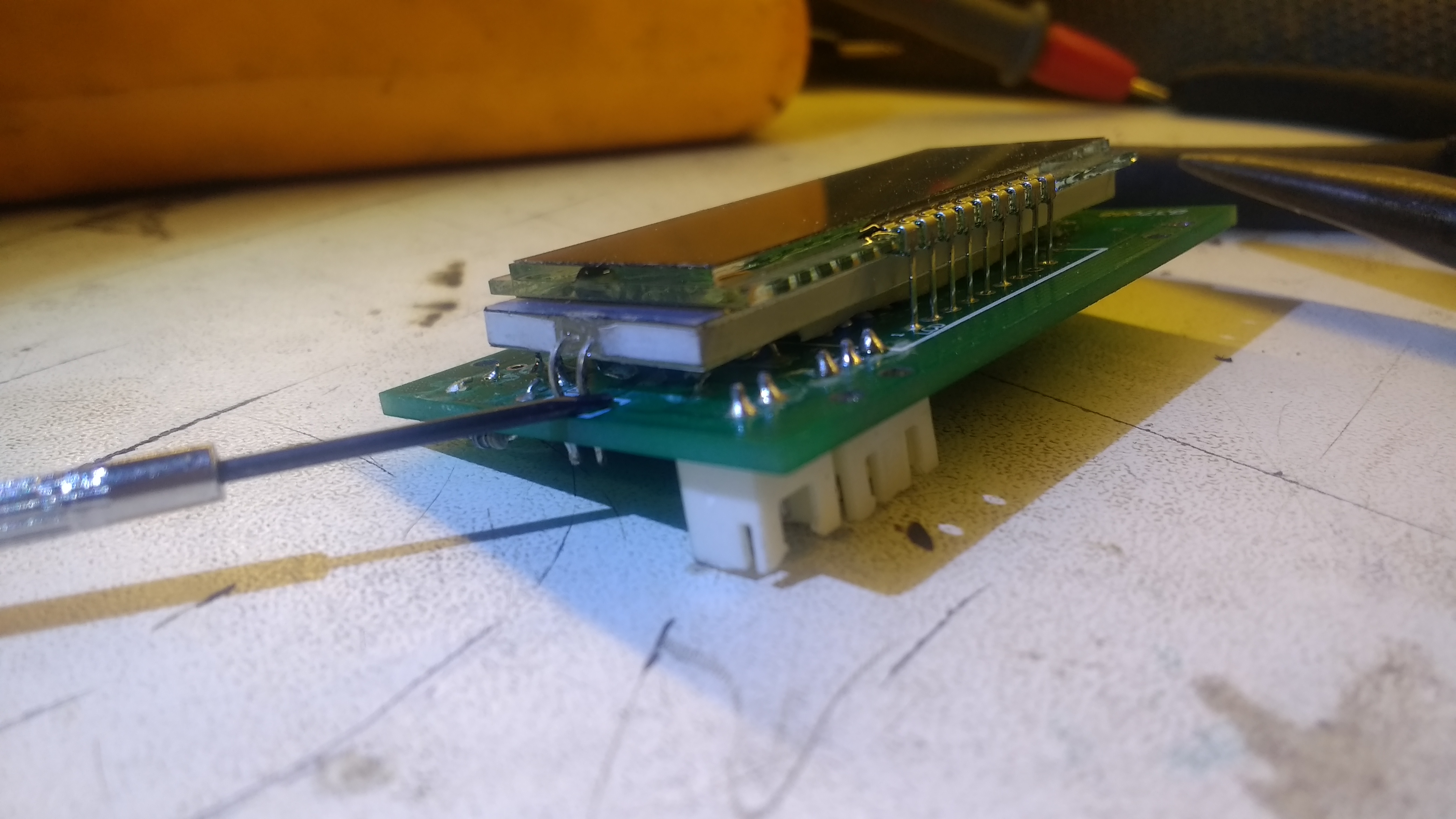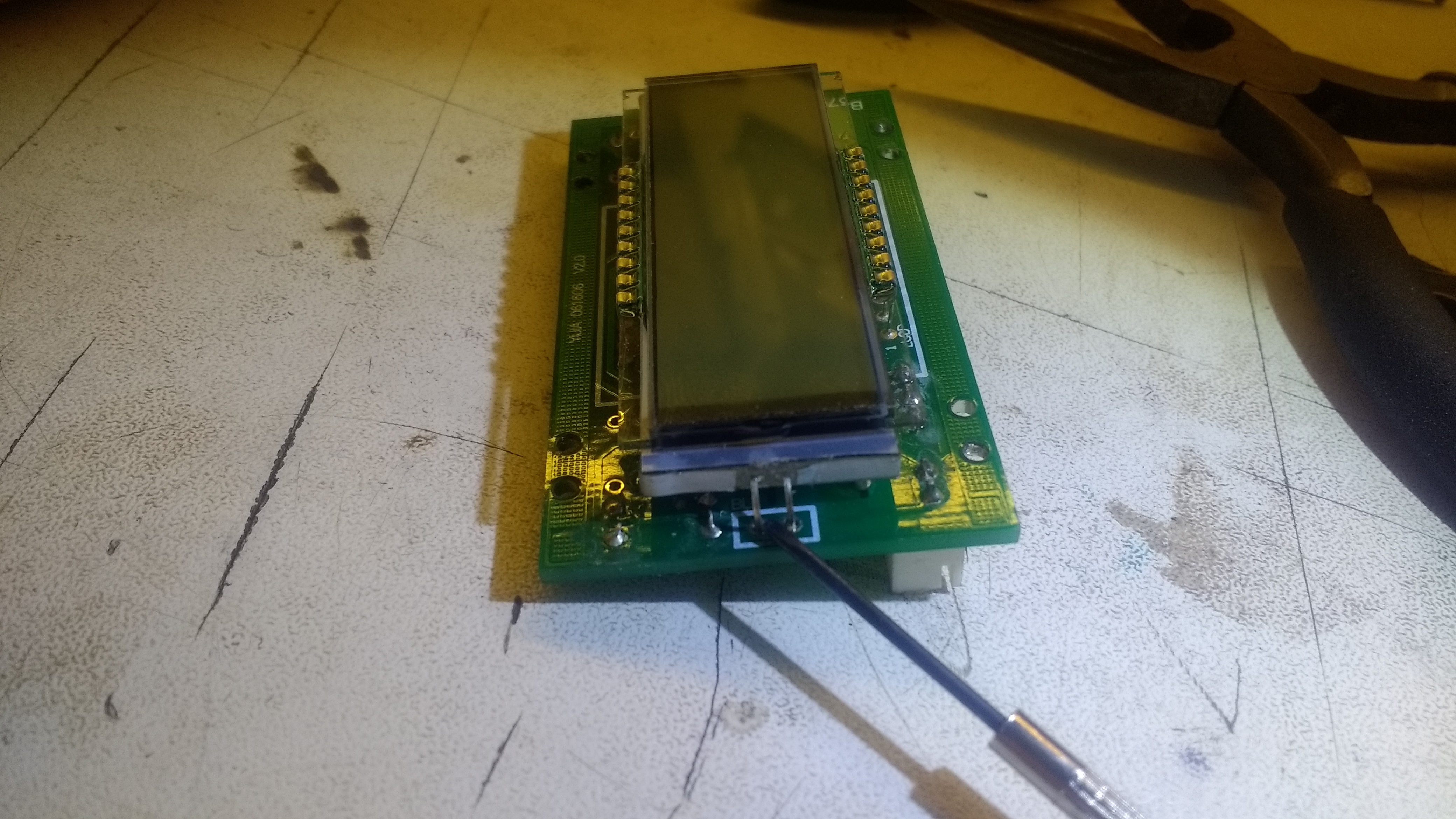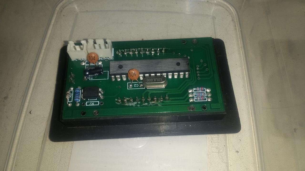 Le rétroéclairage de l'afficheur du compte tour de ma fraiseuse clignote, s'éteint et se rallume par intermittence. Je pense que c'est la LED qui est fatiguée car il y a 5V aux bornes de la LED, c'est à dire 4.96V quand elle est éteinte et 4.60 quand elle s'allume. Bref elle est bien alimentée en permanence.
