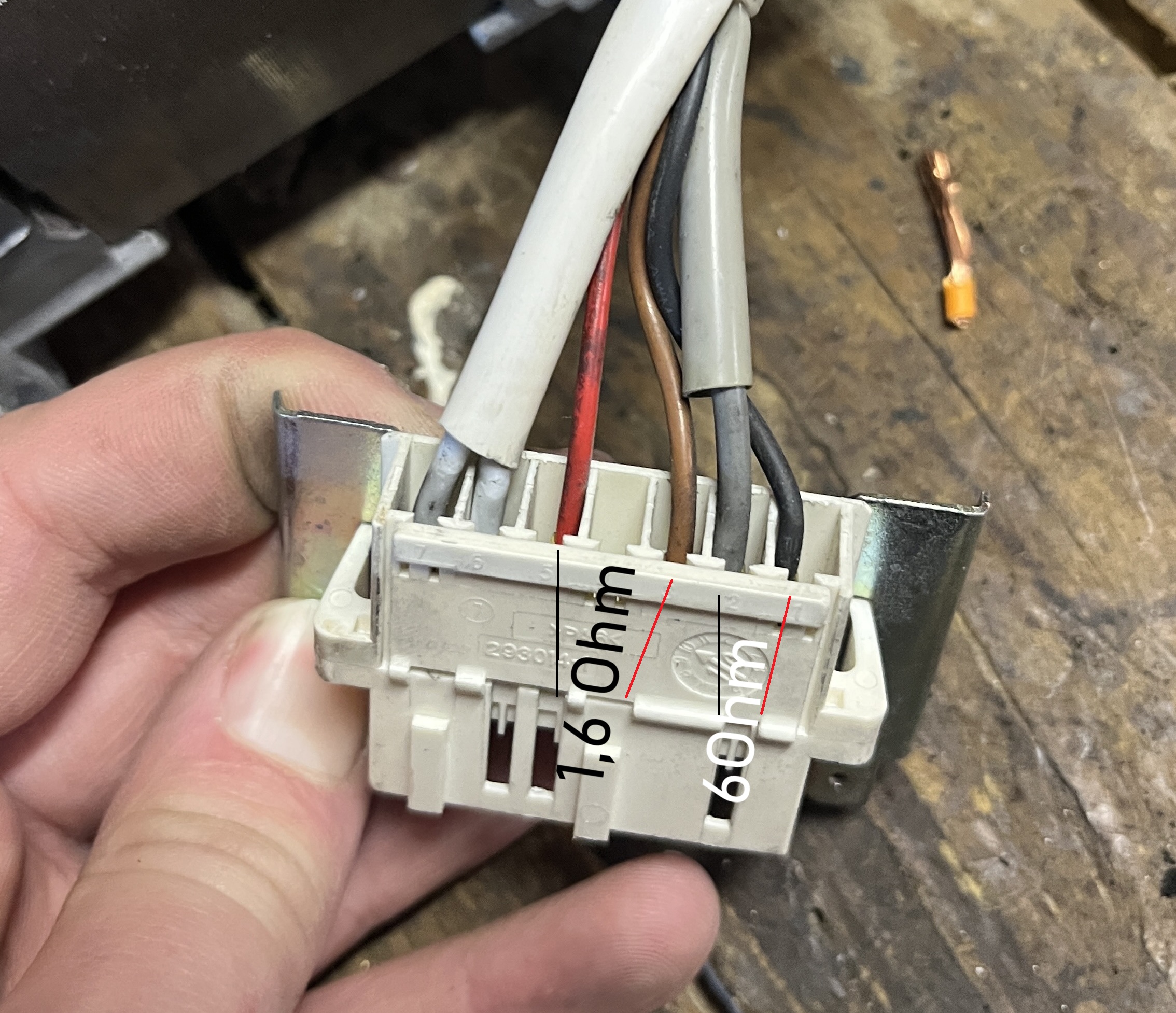 - Mesures des enroulements (sur connecteur moteur) :