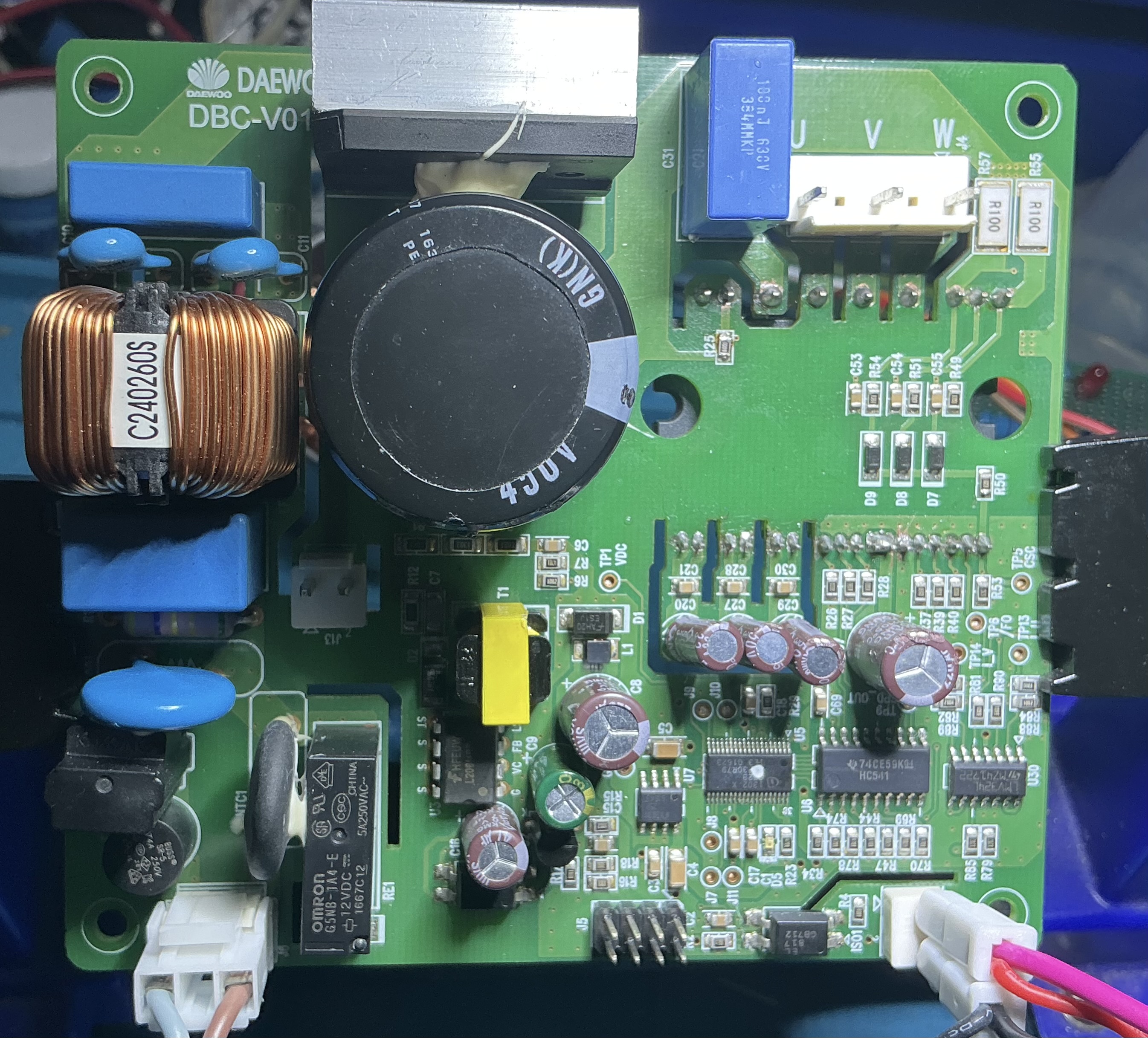 Panne carte inverter Daewoo sur frigo FRN-ZB60DX,carte DBC-V01 160720, j’ai changé l’IPM mais toujours un souci. J’entends le petit relais sur la carte mais pas de tension en UVW.