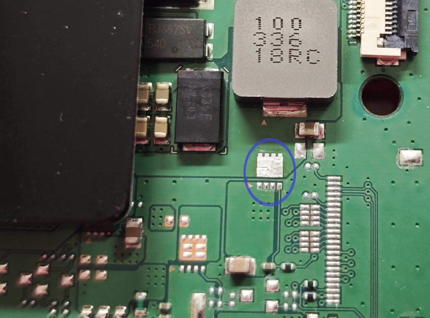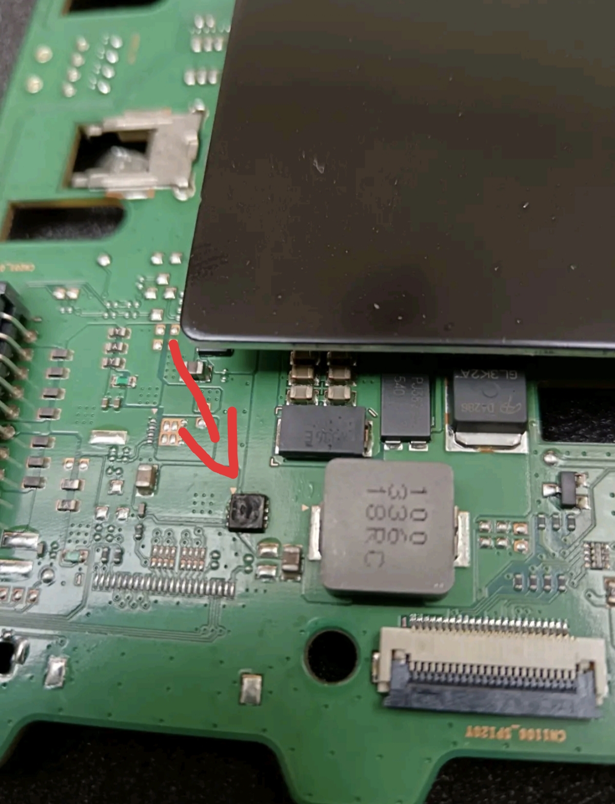 Débrasage du composant en espérant un marquage dessous, fait ! Y a rien.
