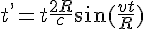 La première partie consiste en un rappel du phénomène d’aberration de la lumière. Dans le cas présent on va considérer qu’à tout instant, le voyageur peut être assimilé à un mouvement rectiligne uniforme tangentiel au cercle. Il verra donc simplement un cercle projeté vers l’avant du fait de l’aberration/Doppler relativiste. Clin d’œil à Zef qui avait donc raison sur ce point![]()