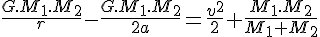 On commence par définir le demi grand axe de la trajectoire d'une particule test en orbite autour d'un corps de masse M = M1 + M2 situé en G (c'est l'ellipse grise)