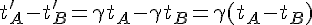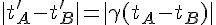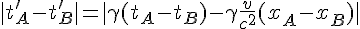 Alors pour une durée |tA-tB| entre A et B dans R (sous-entendu mesuré dans R par les instruments de R, ce qui est un pléonasme) on a la durée suivante entre A et B dans R' :