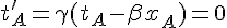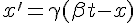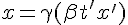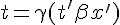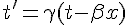 Transformons les coordonnées t,x en coordonnées t',x' grâce aux transformations de Lorentz