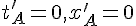 . Leurs horloges respectives marquent 0 en cet évènement. Le système de coordonnées t,x est tel que sur la ligne d'univers de la Terre, la coordonnée t correspond à l'indication de l'horloge de la Terre et tout les événements pour lesquels x=0 se produisent au niveau de la Terre. Le système de coordonnées t',x' est tel que sur la ligne d'univers de la fusée, la coordonnée t' correspond à l'indication de l'horloge de la fusée et tout les évènements pour lesquels x'=0 se produisent au niveau de la fusée.