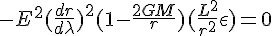 qui utilise la méthode générale, avec les constantes du mouvement (énergie = E, moment angulaire = L, qui sont conservés sur une géodésique, car la métrique ne dépend ni de t ni de phi).