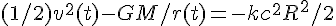 où le membre de gauche correspond à l'énergie totale (newtonienne) d'un volume comobile de masse unitaire.