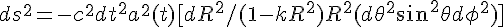 où a(t) est le facteur d'échelle et k=-1, 0 ou 1 est le signe de la courbure spatiale. Remarque : en choisissant cette forme on impose que la coordonnée radiale R soit sans dimension (et soit strictement inférieure à 1 si la courbure spatiale est positive), et que a(t) ait la dimension d'une longueur.