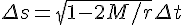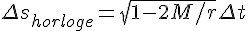 Il y a un facteur (1-2M/r) devant dt². Pour une horloge restant constamment aux même coordonnées r,theta,phi, la variation de son temps propre s est reliée à la variation de t parDonc voilà une illustration pour expliquer comment je comprends la chose.